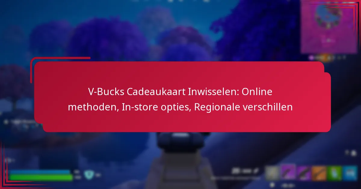 Het inwisselen van V-Bucks cadeaukaarten kan op verschillende online manieren en in winkels, wat flexibiliteit biedt voor spelers. Online inwisseling gebeurt meestal via platforms zoals de Epic Games Store en gameconsoles, terwijl fysieke kaarten bij tal van retailers kunnen worden ingewisseld. Daarnaast spelen regionale verschillen een cruciale rol in het inwisselproces, wat invloed heeft op de beschikbare methoden en ondersteunde platforms.